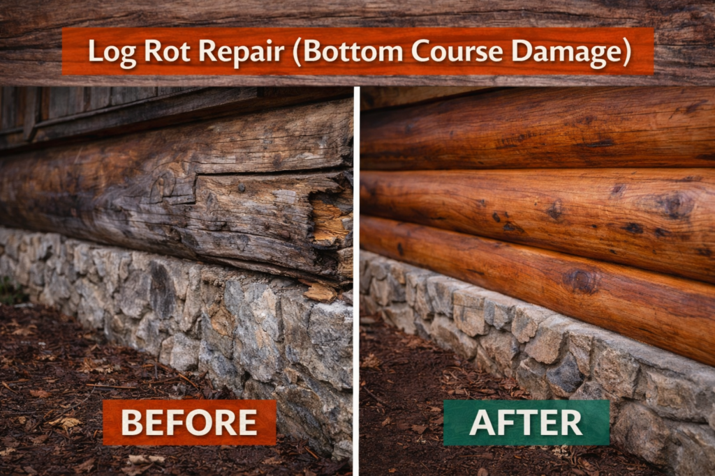 Project Example #3: Log Rot Repair (Bottom Course Damage)
