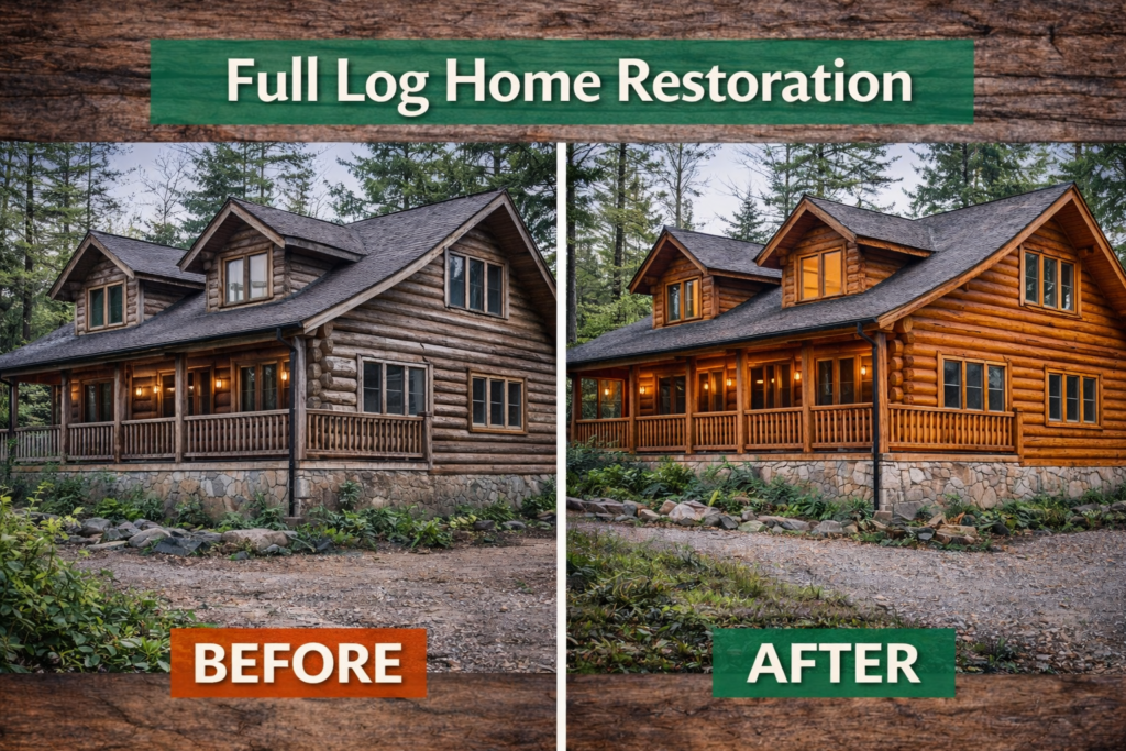 Before & After Log Home Restoration Projects, Seeing real restoration projects helps homeowners understand what’s possible — and what problems should never be ignored. Below are examples of common log home issues we fix, along with the solutions and results.