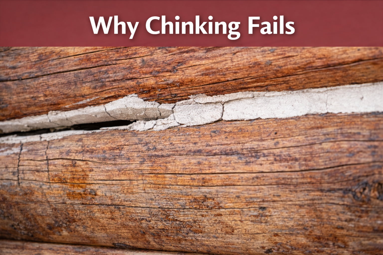Chinking failures happen for a few common reasons. Some are natural (movement), while others come from incorrect installation or poor prep.