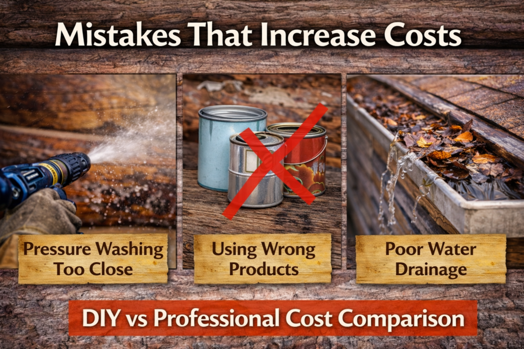 A Costs vary based on size, condition, access, and repair needs. The biggest drivers are prep, rot repair, and stain removal work.